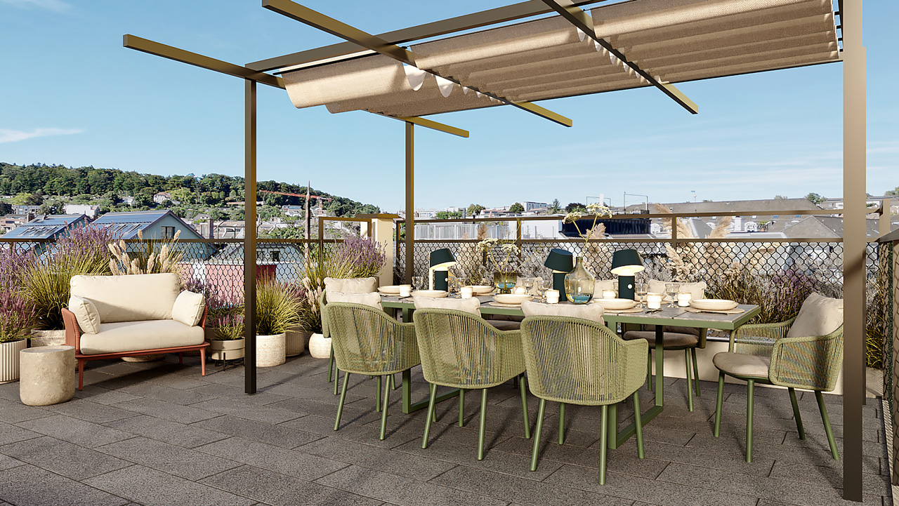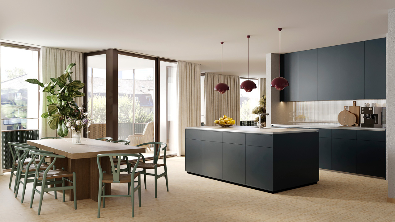 Wohnen an der Nordstrasse bedeutet Vielfalt, Helligkeit und Komfort. Die Wohnungen, designt von Studio Jakob, sind sehr elegant strukturiert und bieten für unterschiedliche Lebensentwürfe das passende Zuhause. Die grosszügige Fenster ergeben sehr helle, lichterfüllte Räume. Technisch ist alles auf Zukunft und Behaglichkeit ausgelegt: Erdsonden-Wärmepumpe mit Free-Cooling, regulierbare Fussbodenheizung und raumweise Lüftungsgeräte mit Wärmerückgewinnung sorgen zu jeder Jahreszeit für ein sehr angenehmes Klima. Die eigene Photovoltaik produziert hauseigenen Strom und elektrische Markisen bieten komfortablen Sonnenschutz. Mobil sind Sie mit grosszügigem Veloraum (30 Plätze) und pro Wohnung einer Mobility MEMBER-Mitgliedschaft, die Sie geschenkt erhalten.